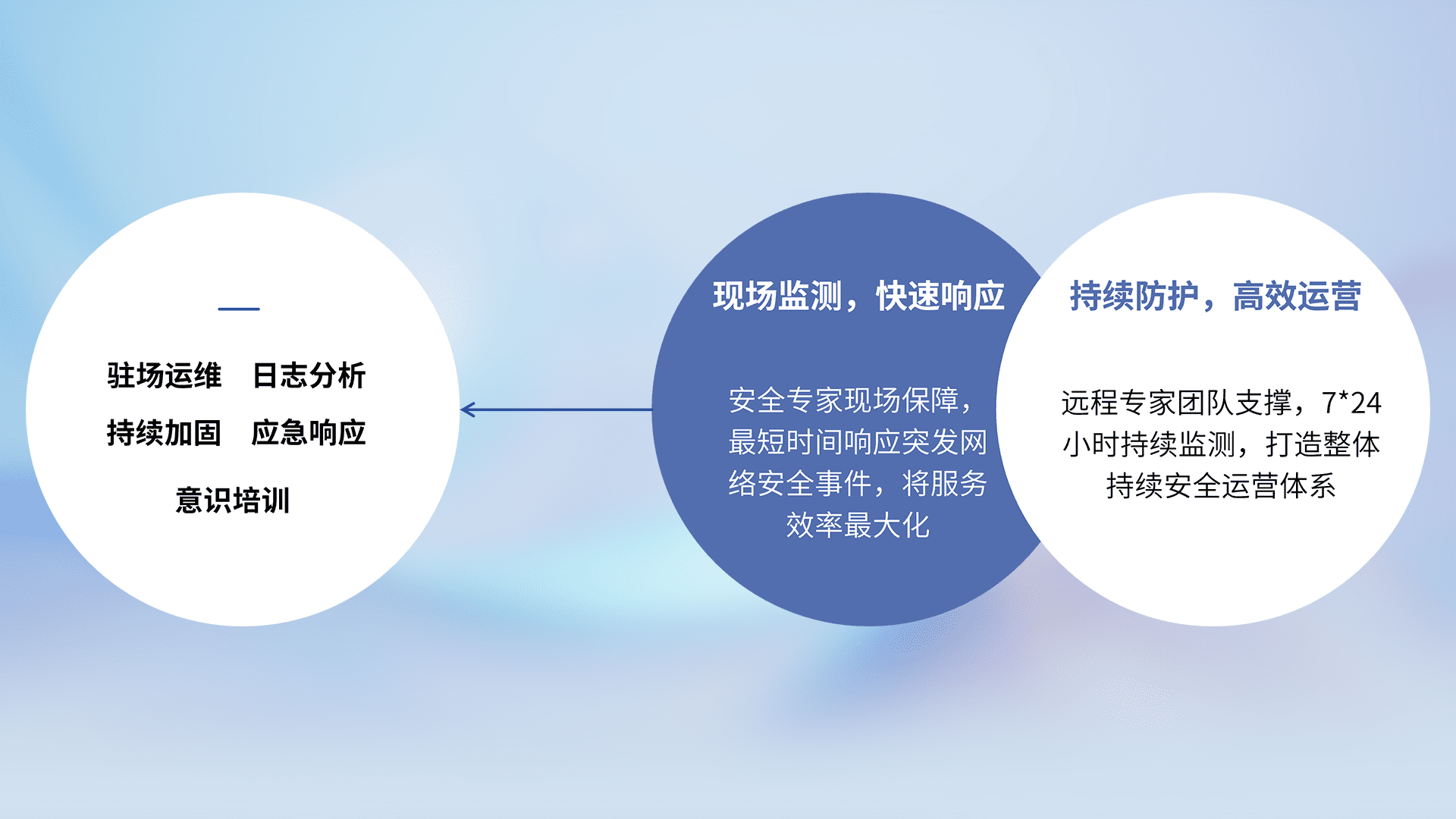 针对客户行业特性,,,提供专属的一站式安全管理服务,,,帮助客户全面感知网络空间威胁,,通过安全专家的线上、、、、线下防护支持,,,,实现风险闭环,,,将安全保障常态化,,为客户打造常态化安全运维运营服务。。。。