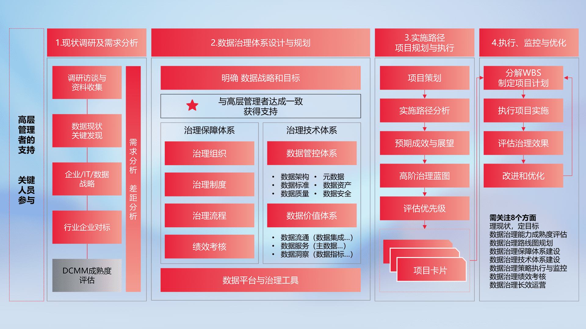 以高阶专业视角定制解决方案,,结合行业最佳实践,,覆盖数据全生命周期管理,,,,确保策略落地执行,,,助力企业构建高效、、、可持续的数据管理体系,,推动数字化转型。。
